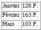 | Janvier | 128 F. |