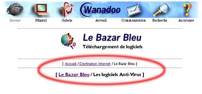 Dans les pages d'information de Wanadoo, vous disposez de deux indices pratiques pour vous repérer et naviguer :